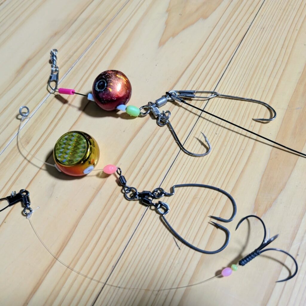潮が速かったので重り15号を持参したタイラバヘッド100Gに替え、ほぼほぼ船宿仕掛けを使っていました。